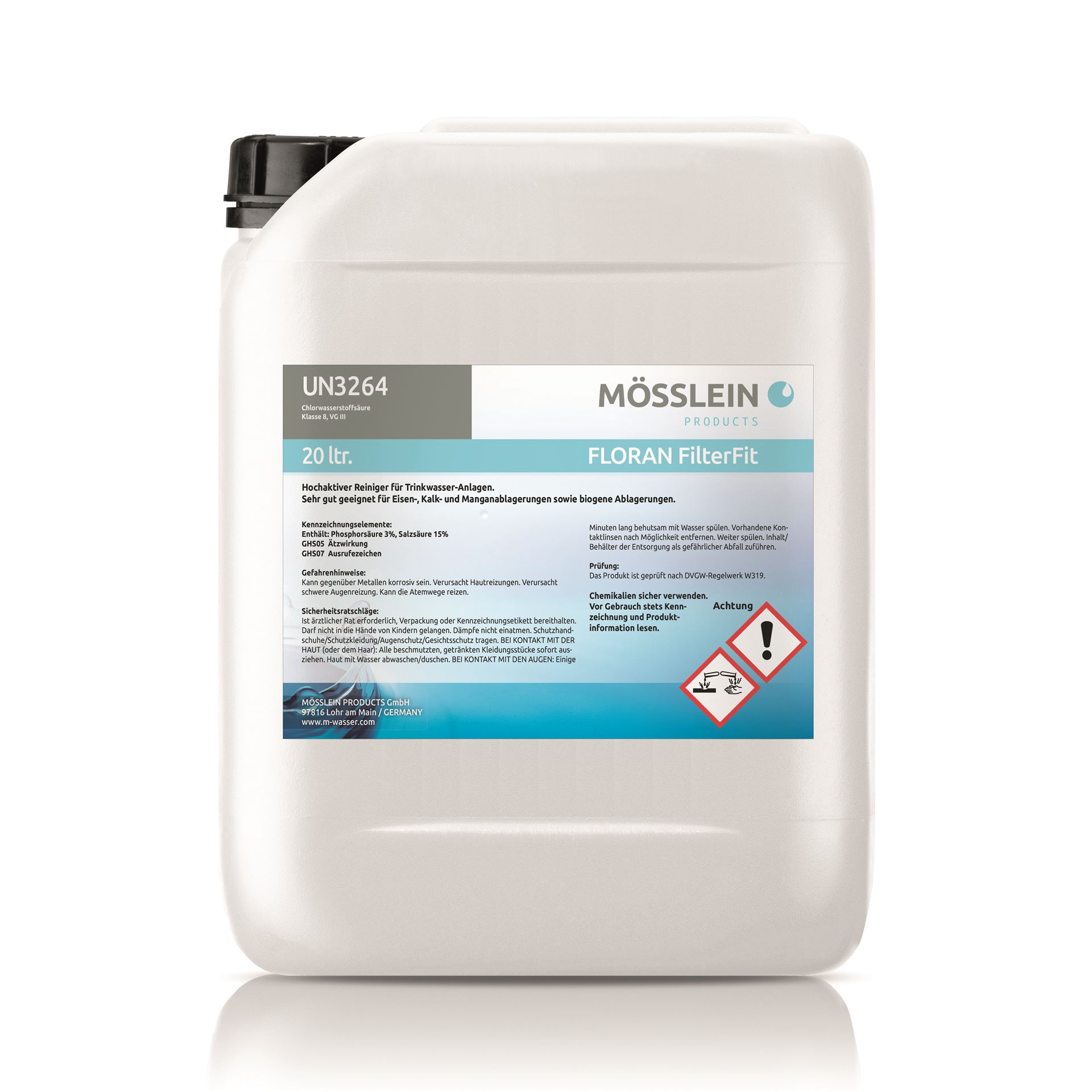 Filter-Fit ist ein extrem starker Reiniger für hartnäckigste Ablagerungen in Trinkwasseranlagen. Bewährt bei starken Eisen- und Manganbelägen. Gelöst werden Eisen- und Manganablagerungen, Karbonate und Aluminiumausfällungen genauso wie oxidische Beläge und biologische Verunreinigungen. Liefergebinde: Kanister mit 20 Liter Inhalt plus 1 Liter Aktviator.